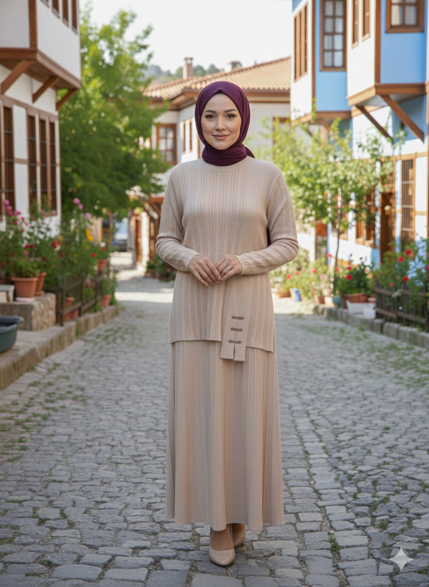 Şıklığı ve konforu bir araya getiren Merserize Toka Detaylı Etekli Takım, yaz aylarının vazgeçilmezleri arasında yer alıyor. Bu özel takım, hem günlük kullanıma hem de özel davetlere uygun tasarımı ile dikkat çekiyor. Kolay kombinlenebilir yapısı sayesinde, gardırobunuzun yıldızı olmayı vaat ediyor.