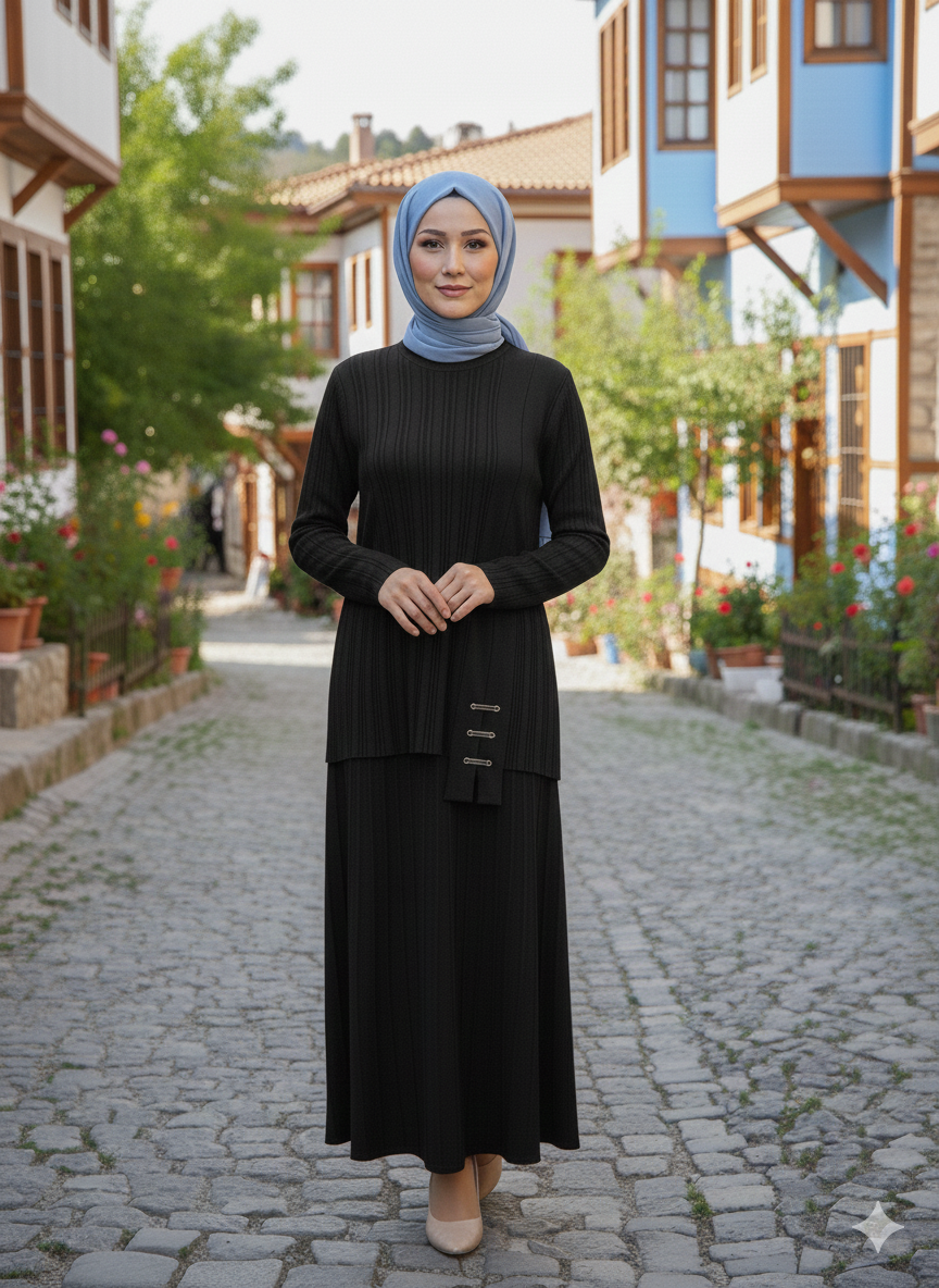 Gardırobunuza şıklık katacak bu özel takımı kaçırmayın! Merserize Toka Detaylı Etekli Takım, hem rahat hem de göz alıcı olmak isteyen kadınlar için ideal bir seçenektir.